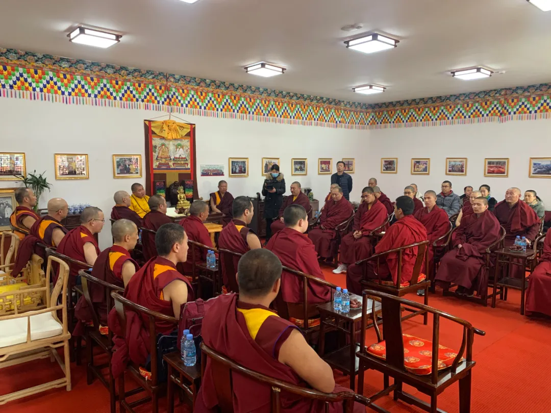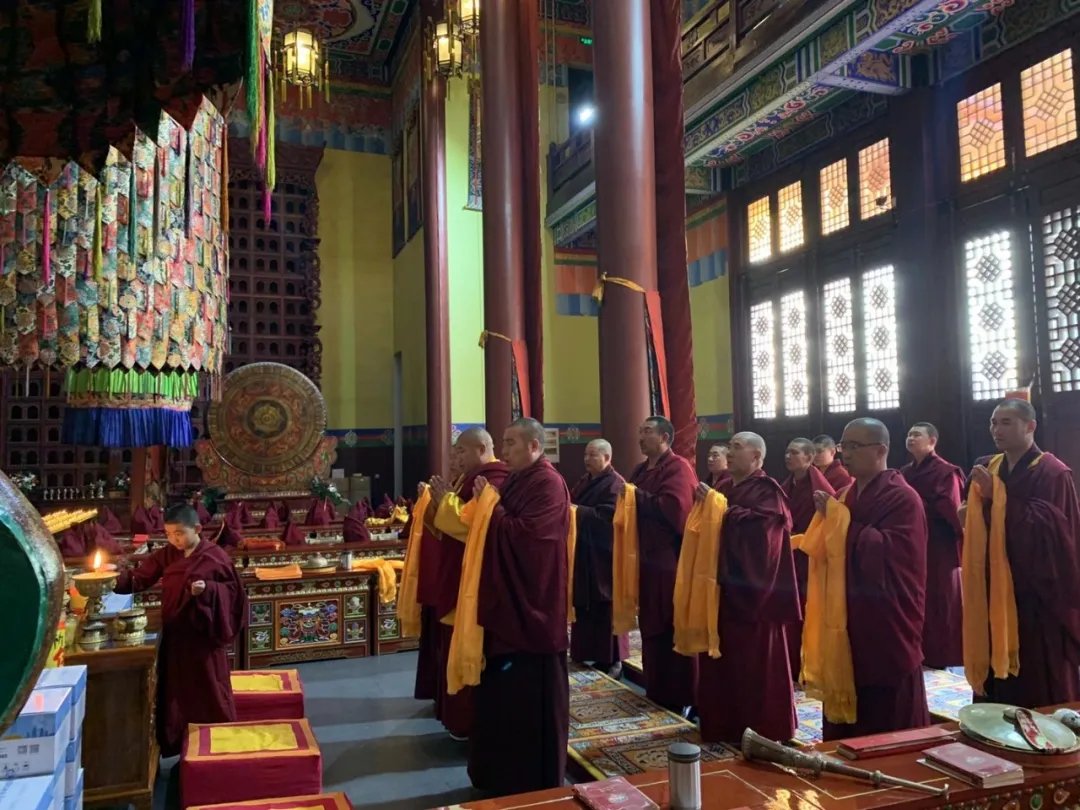 藏传佛教灌顶实训现场本次教职人员综合素质提升培训共计9天,主要从理论学习和实训两个方面进行,理论学习包括学习“铸牢中华民族共同体意识”、中国共产党百年党史、《内蒙古自治区促进民族团结进步条例》(新版)、《宗教教职人员管理办法》(新版)等理论政策,《佛子行三十七颂》、《修心七要引导文》以及《道果法珍宝教言》三现、三续;实训学习则包括汉传佛教、藏传佛教、蒙语版各项仪轨内容,以及此次所有学员的年终考核和自我评估。