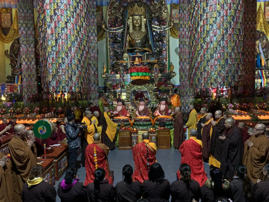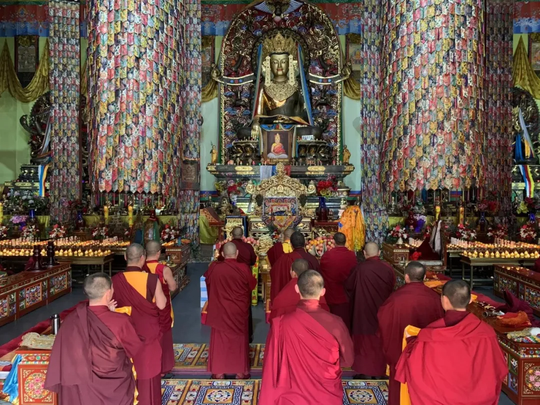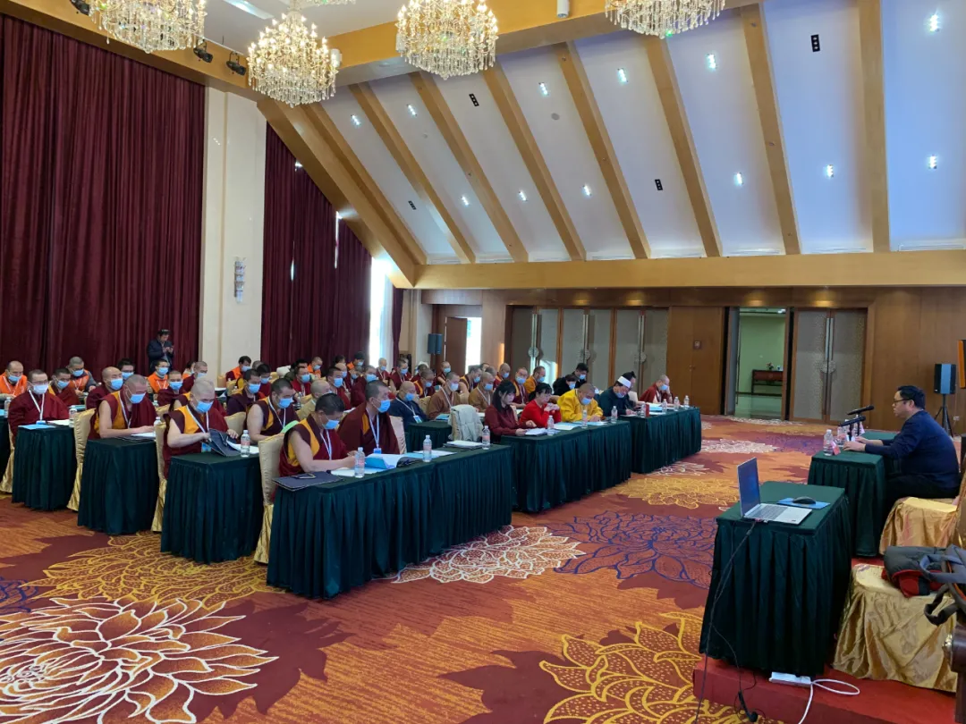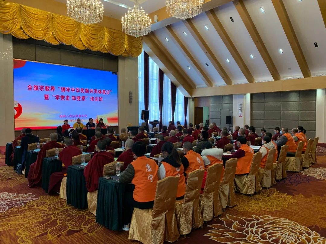 藏传佛教灌顶实训现场本次教职人员综合素质提升培训共计9天,主要从理论学习和实训两个方面进行,理论学习包括学习“铸牢中华民族共同体意识”、中国共产党百年党史、《内蒙古自治区促进民族团结进步条例》(新版)、《宗教教职人员管理办法》(新版)等理论政策,《佛子行三十七颂》、《修心七要引导文》以及《道果法珍宝教言》三现、三续;实训学习则包括汉传佛教、藏传佛教、蒙语版各项仪轨内容,以及此次所有学员的年终考核和自我评估。